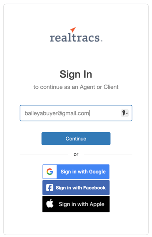 When setting up your client for a Listing Alert Campaign, you are inviting them to be a part of an interactive Realtracs portal that houses all of the listings you have sent them through Listing Alert. They only need to click Create an Account in the 1st email they receive and then they can connect thru email, Google, Facebook or Apple to sign into their own portal on realtracs.com!