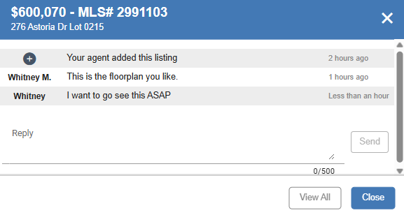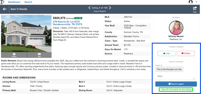 In the full listing report, they can leave comments for their agent or view any comments their agent left for them. To see all the comments on a listing, click on View All Comments for this listing.