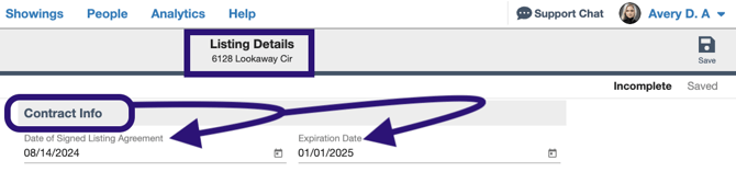 While creating the listing, simply enter the Date of Signed Listing Agreement & Expiration Date in the Listing Details section under Contract Info.