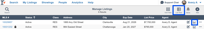 OR from the List View, Find the listing you wish to see data for and select the Listing Activity Report icon.