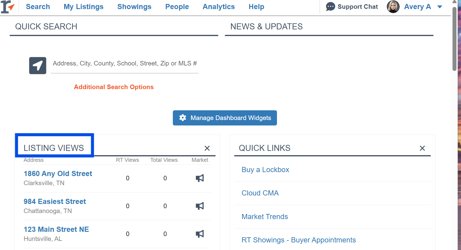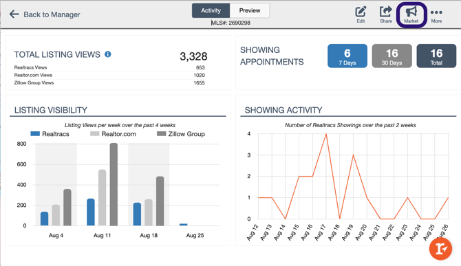 You can also easily keep track of your listing activity straight from your Realtracs Dashboard! Use the Listing Views widget to keep track of your views and marketing your listing.