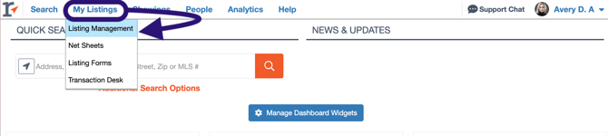 Hover over My Listings and select Listing Management.